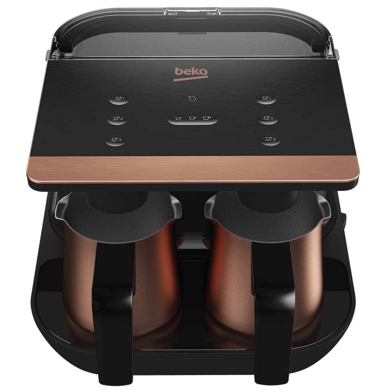 De Beko TKM8961B is een Turkse koffiezetter. Het koffieapparaat heeft de mogelijkheid om twee koffiepotten te vullen. Het apparaat heeft een waterreservoir van 1,5 liter. De koffiepotten zijn van roestvrijstaal en hebben een inhoud van 2 liter.
