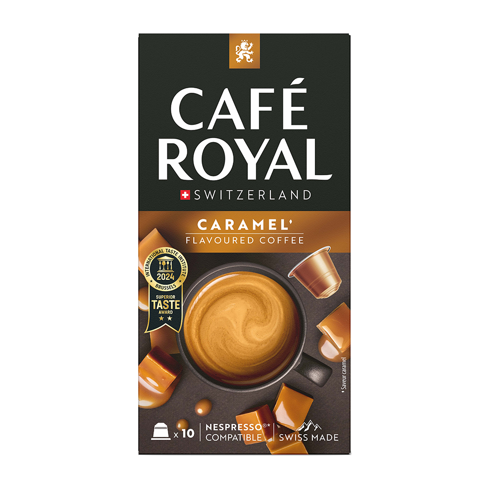 De Café Royal Caramel is een koffie met een karakter, en doet niets anders dan jou verwennen! De ronde, zachte koffiesmaak wordt heerlijk begeleid door het subtiele, romige karamelsmaakje. Net even anders dan je standaard koffie en daarom ideaal om jezelf (en anderen!) te verrassen en trakteren. Tip: probeer hem ook eens met melk (of melkvervanger) en een snufje kaneel!