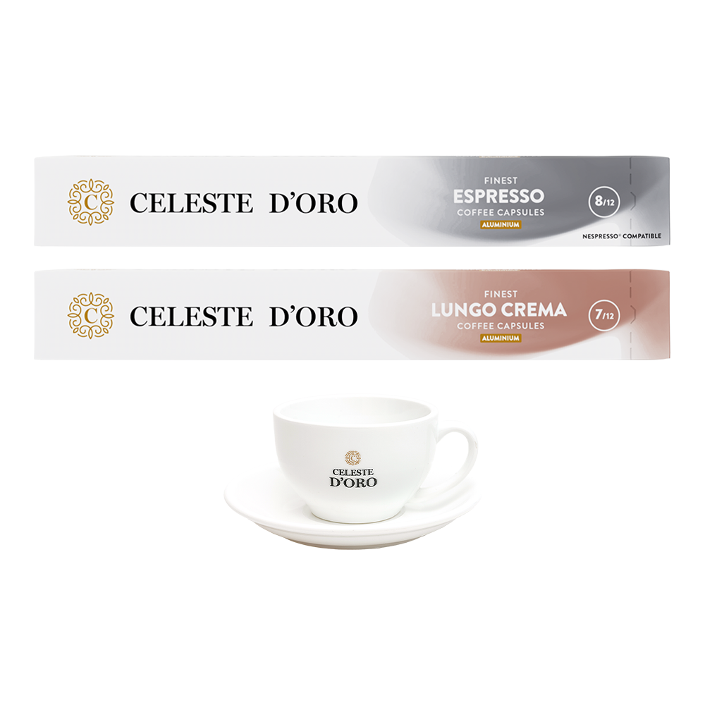 Verfijnd, zacht en toch intens: dat is wat je mag verwachten van de koffiecups van Celeste d’Oro. Het merk gelooft in tijdloze elegantie, koffiesmaken die blijven inspireren. Dit pakket bestaat uit: