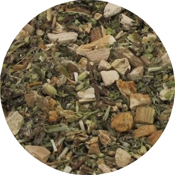 Geeft ondersteuning en versterking van de darmflora. Gebruik twee theelepels kruiden op een halve liter gekookt water en drink twee mokken per dag. Meer dan 280 soorten thee uit voorraad bij De Theebaron.