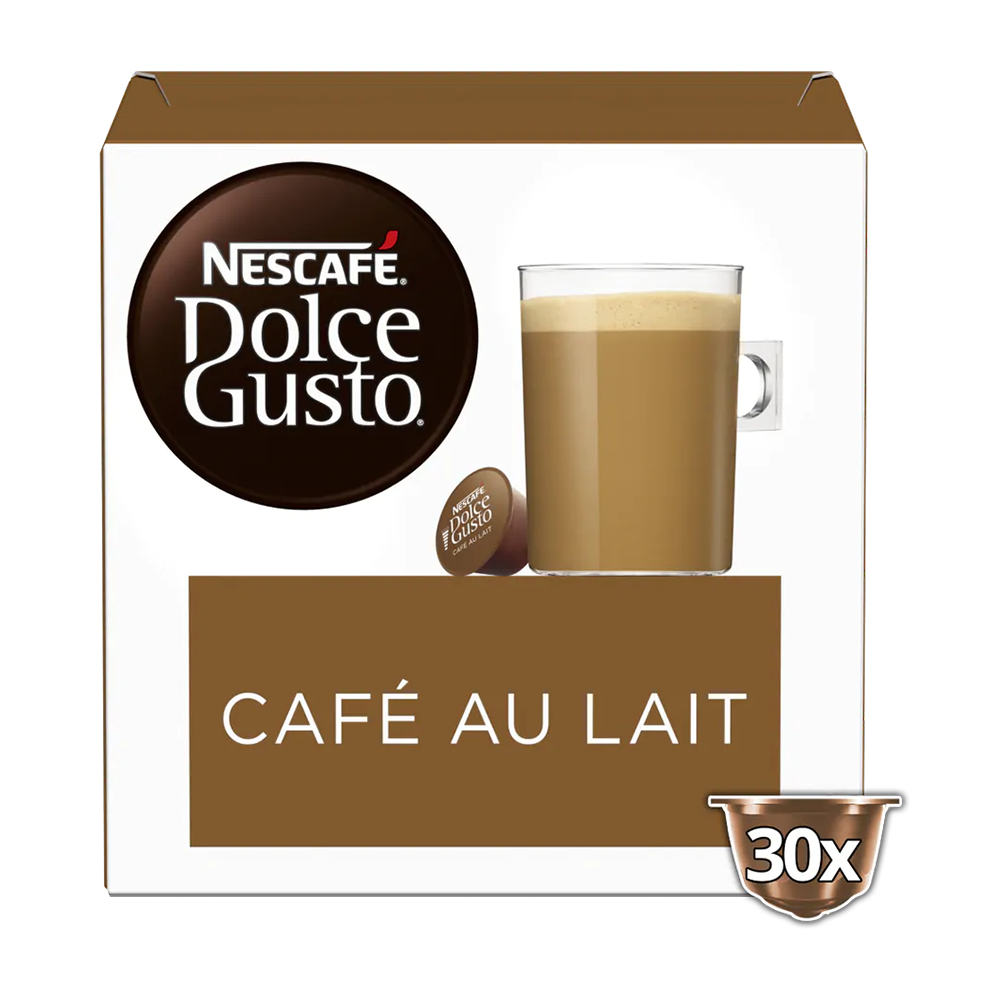 Geniet nu eXtra Lang van de NESCAFÉ Dolce Gusto Café au Lait met de XL-verpakking van intense koffie en zachte melk, verpakt in één koffiecapsule.