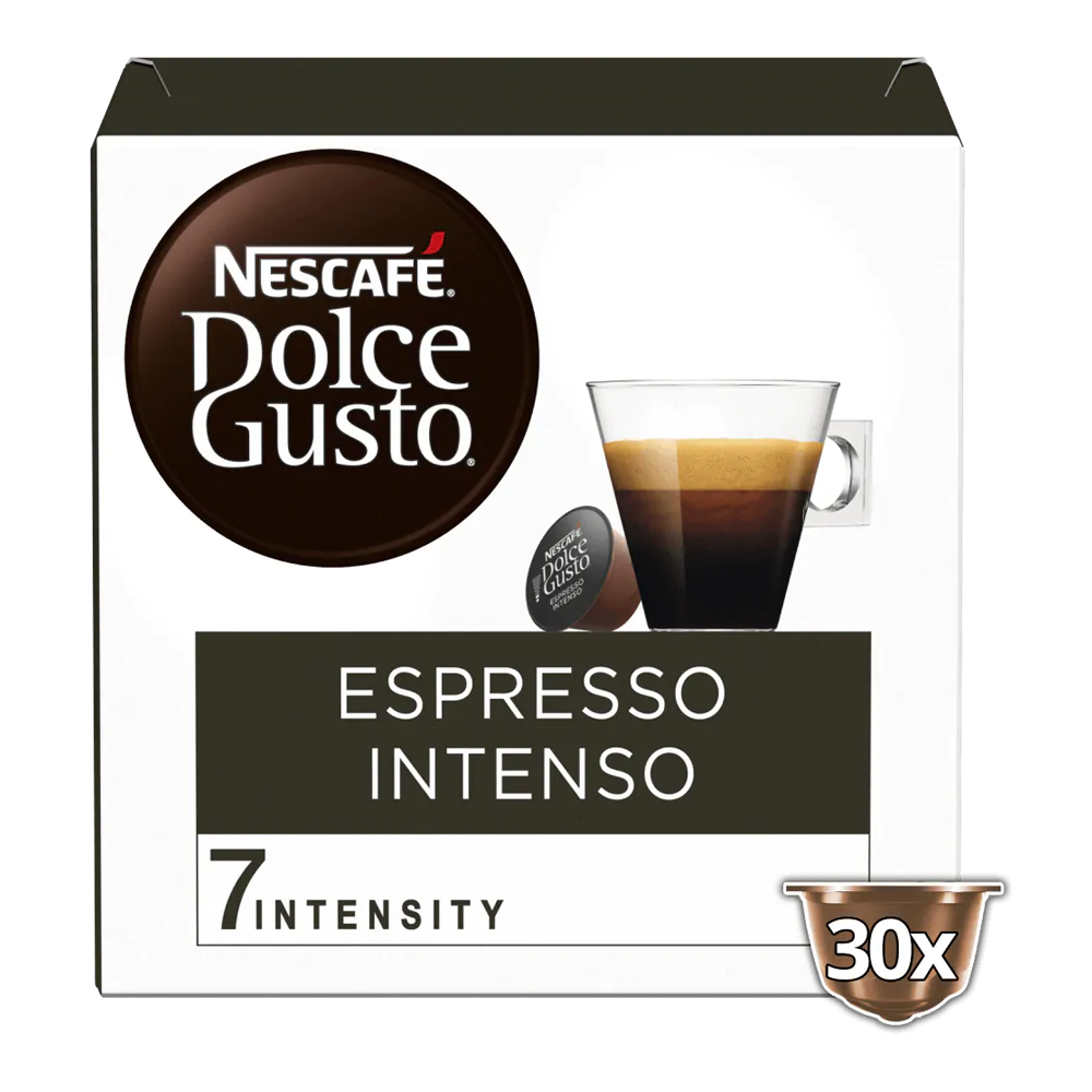 30 kopjes koffie. De Nescafé Dolce Gusto Espresso Intenso XL is een medium-donker gebrande espresso koffie met een intensiteit van 7 uit 11.