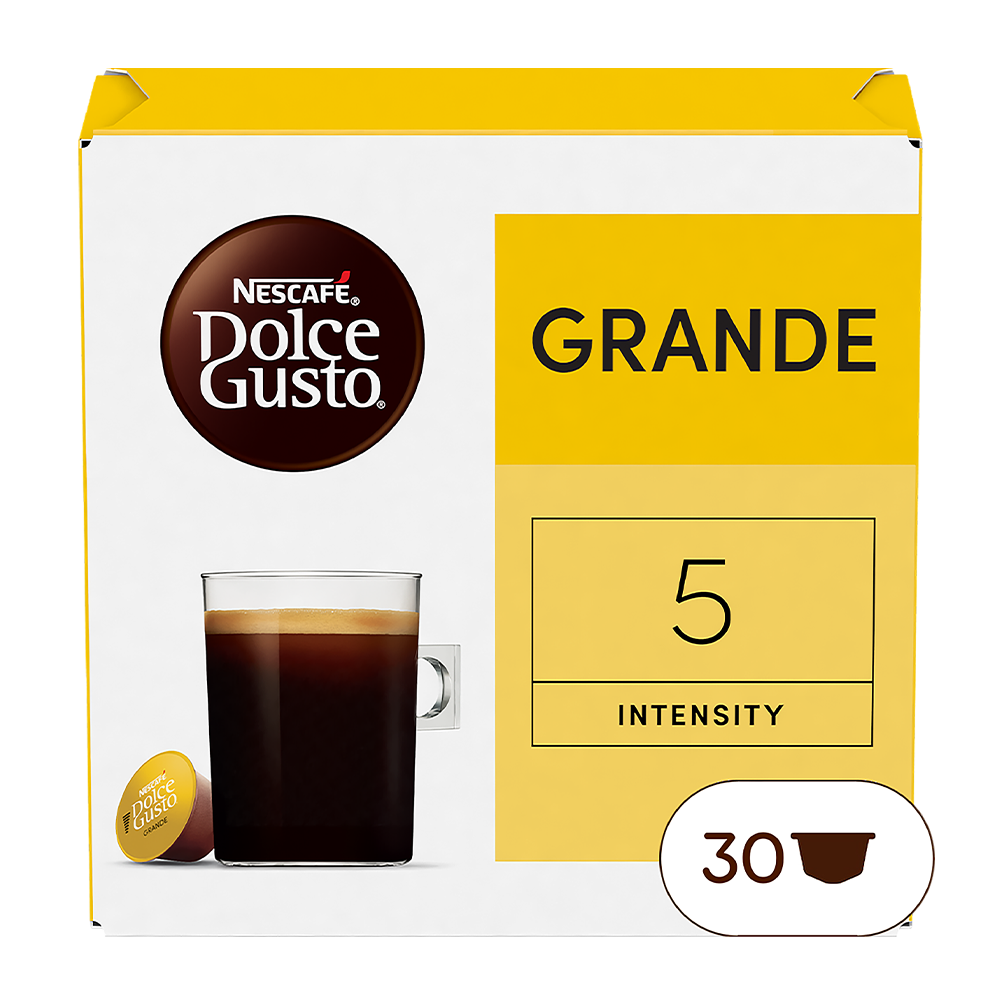 30 kopjes koffie. Ontdek de ultieme koffie-ervaring met deze Grande capsules, waarbij de traditionele Americano wordt verheven tot een ongekende hoogte van smaak en intensiteit.