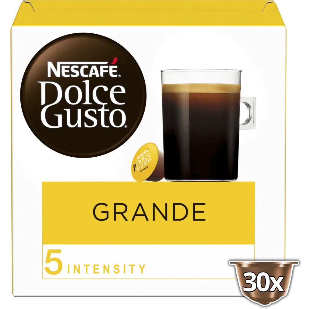 30 kopjes koffie. Ontdek de ultieme koffie-ervaring met deze Grande capsules, waarbij de traditionele Americano wordt verheven tot een ongekende hoogte van smaak en intensiteit.