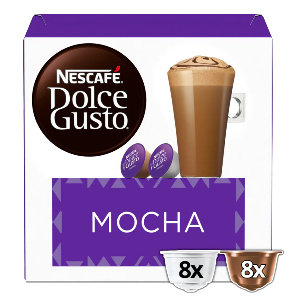 8 kopjes koffie. Ontdek de perfecte mix van koffie en chocolade met onze Dolce Gusto Mocha capsules. 8+8 capsules om van te smullen!