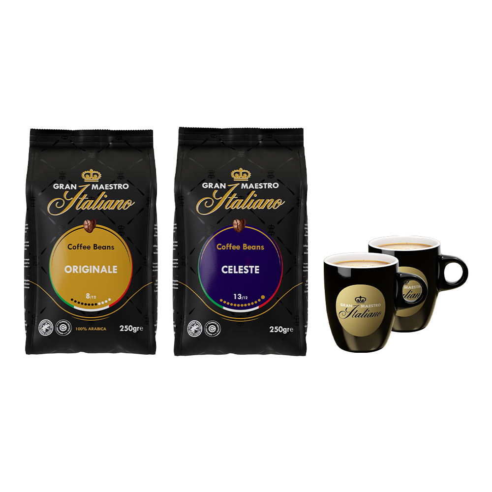 Met de koffiebonen van Gran Maestro Italiano heb je goud in handen. Dit duo van karaktervolle smaken overstijgt de kwaliteit (en populariteit!) van de meeste andere topmerken. Dit pakket bestaat uit:
