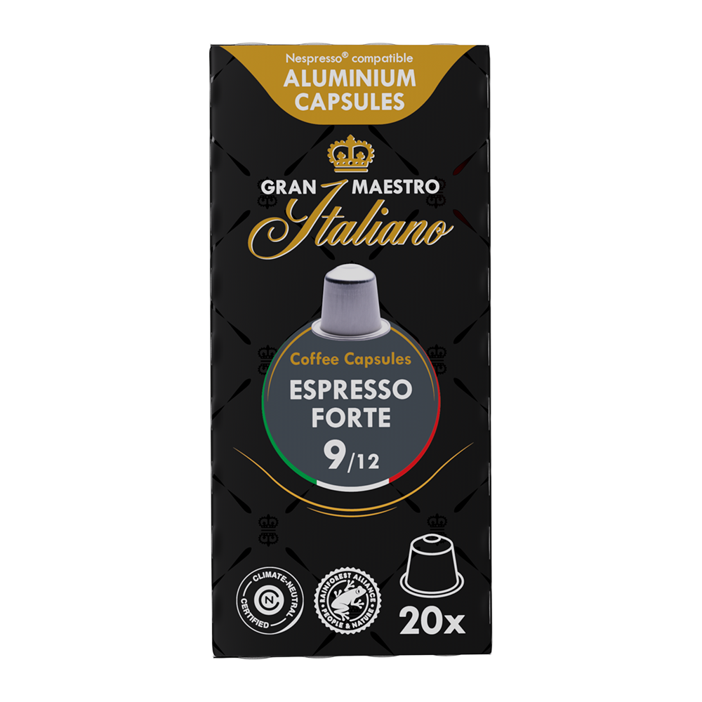 Alle smaken van de Espresso Forte zijn prachtig in balans. De subtiel-aardse tonen van tropisch hout en donkere chocolade worden begeleid door een prikkelend bittertje.