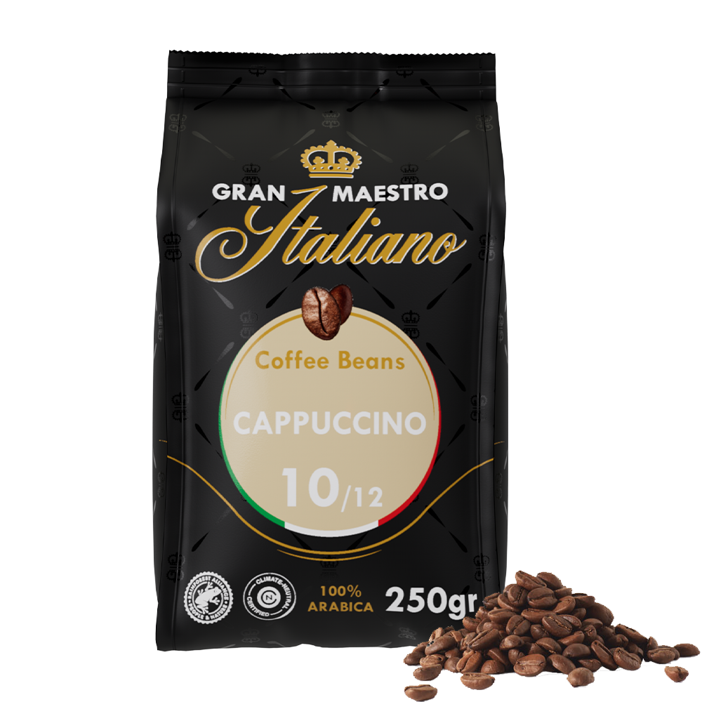 Deze Gran Maestro Italiano Cappuccino koffie is specifiek gebrand voor liefhebbers van koffie met melk. De Cappuccino is een krachtige medium/dark roast koffie met veel geur en karakter.