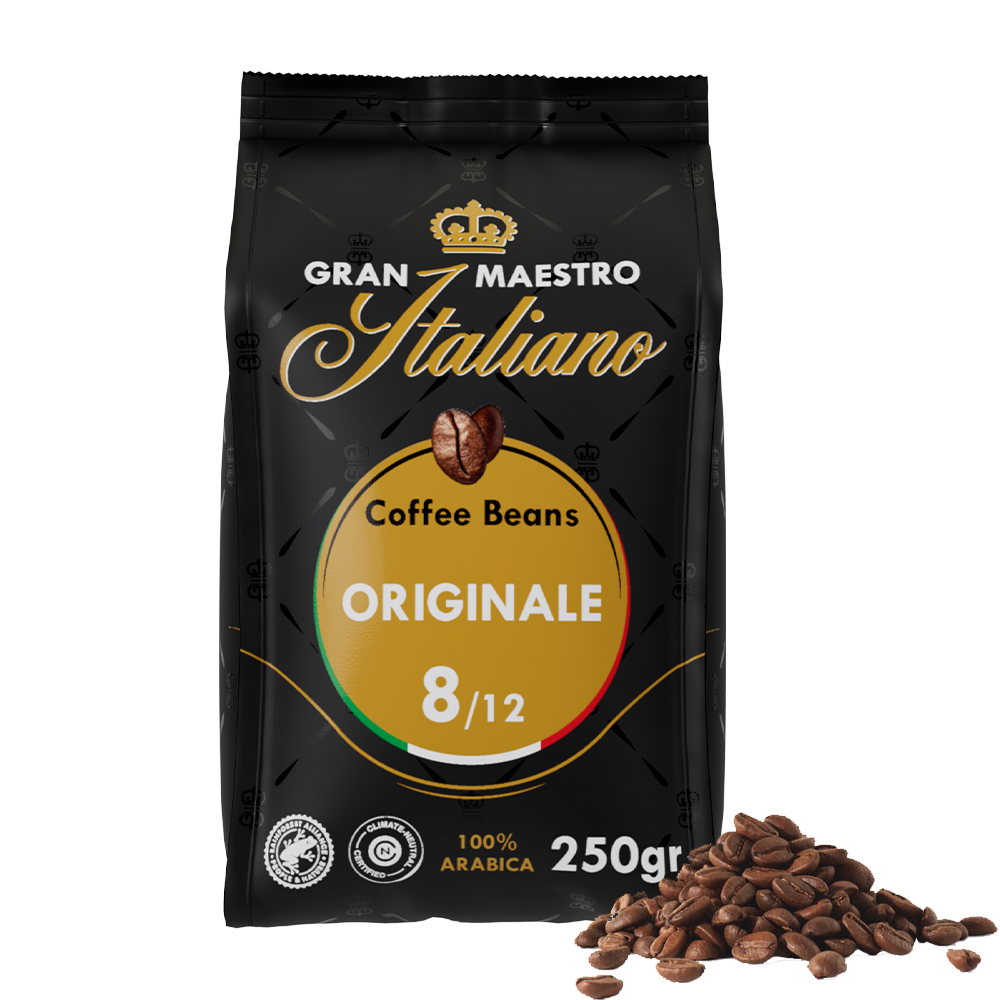 De Gran Maestro Italiano Originale is een medium roast van 100% arabica bonen en is afkomstig uit de beste koffiegebieden van Colombia en Brazilië. Deze koffie is ook verkrijgbaar in 1 kilo.