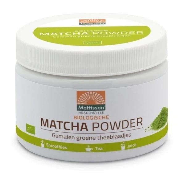 Biologische Matcha Poeder is een groene thee uit Japan en wordt gemaakt van de jonge bladeren van de thee plant Camellia sinensis. Het is de enige theesoort waarbij het gehele theeblad in de vorm van poeder gedronken wordt.