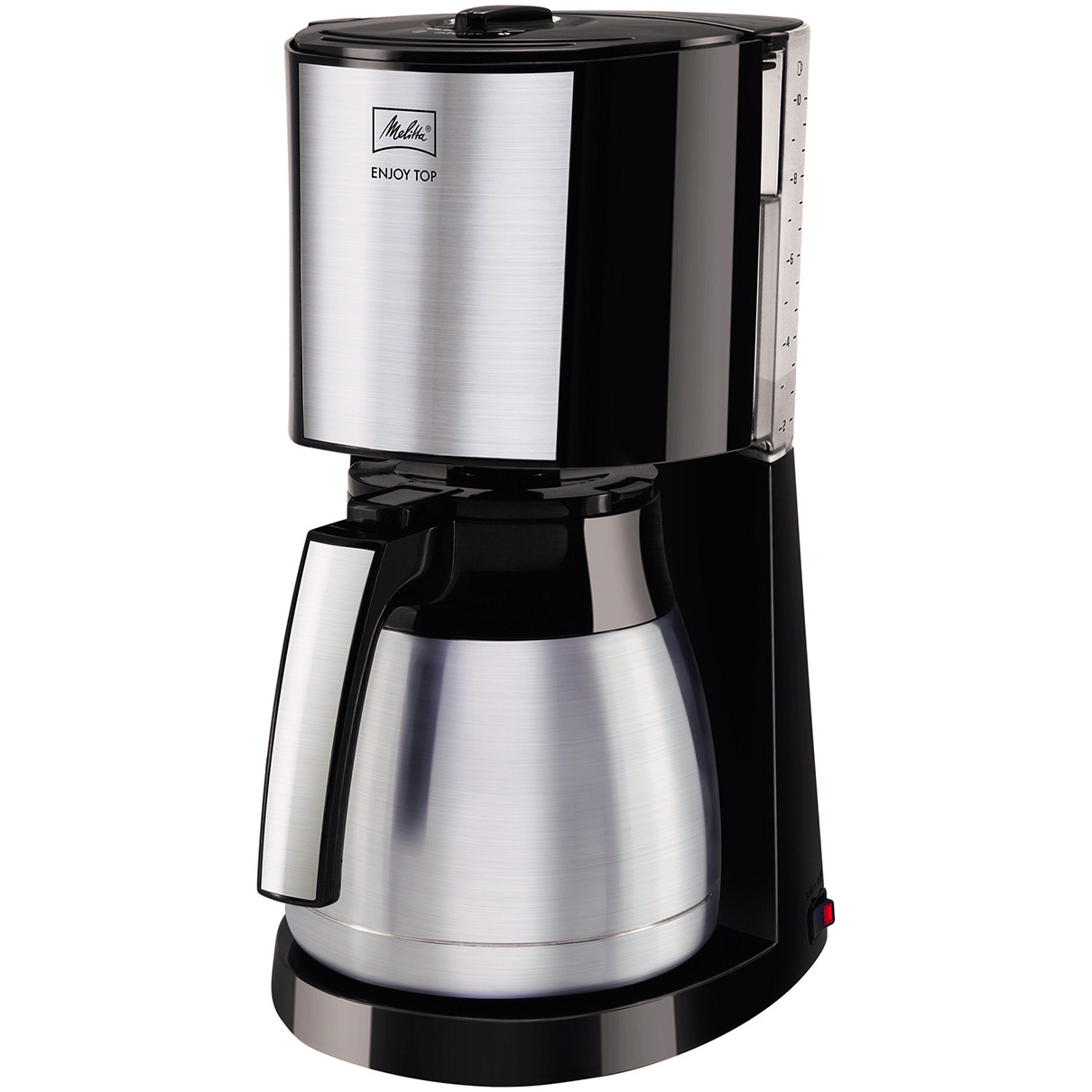 Met het Melita Enjoy Top Therm koffiefilterapparaat zet je tot wel 10 kopjes koffie. De koffie wordt gezet in een dubbelwandige thermokan van roestvrij staal. Met de aromaselector kies je eenvoudig de koffiesterkte, van mild tot sterk. Zo bepaal je de koffiesterkte zonder de hoeveelheid water of gemalen koffie aan te hoeven passen. Dit koffieapparaat heeft verder een zwenkfilter, druppelstop en transparante watertank van 1,25 liter.