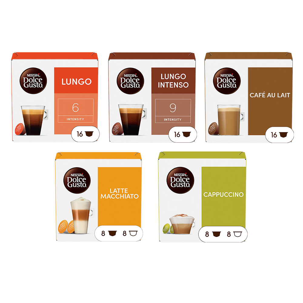 Maak nu voordelig kennis met de verwen-smaken van Dolce Gusto. 80 cups, goed voor 64 kopjes heerlijke koffie.