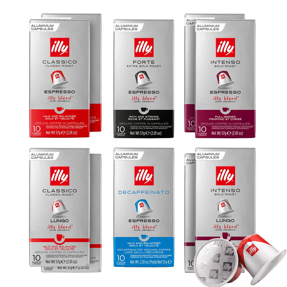 Proef het assortiment van illy. Met 6 verschillende topkoffies in één koffiecups-proefpakket ontdek je eenvoudig jouw favoriete smaak. Altijd extra voordelig.