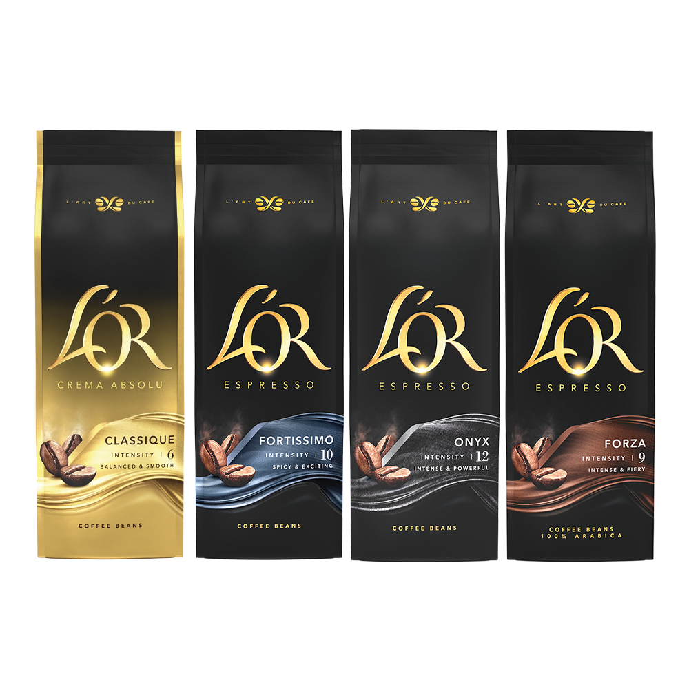 Proef het assortiment van L'OR Espresso. Met 4 verschillende luxe koffies in één proefpakket ontdek je eenvoudig jouw favoriete smaak. Altijd extra voordelig.