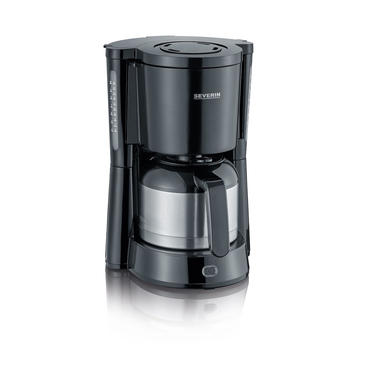 De Severin KA4835 koffiefilter apparaat in de kleur zwart/rvs, heeft een vermogen van 1000 Watt en een capaciteit voor 8 kopjes koffie per keer. Het koffiezetapparaat is voorzien van een roestvrijstalen isoleerkan met doorloopdeksel en een handige 1-handige bediening. Het handige druppel stopsysteem voorkomt dat het apparaat doordruppels als je koffie wilt inschenken. Op het apparaat is goed te zien als het aan staat, dankzij een controle lampje en het schakelt zich automatisch uit indien het niet meer gebruikt wordt. Er is een geïntegreerde kabel opbergruimte voor het eenvoudig opbergen van de kabel aanwezig.