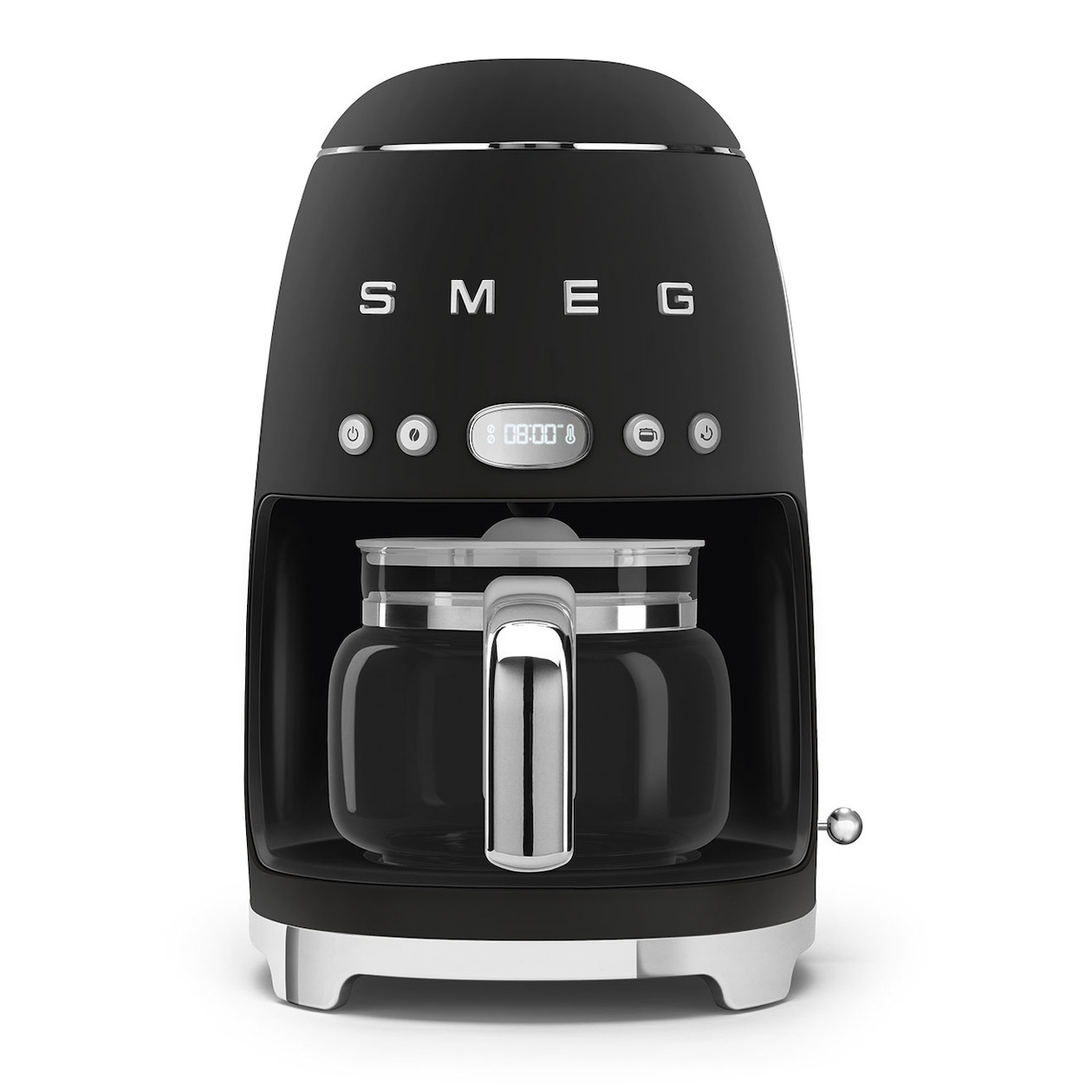 Smeg DCF02BLMEU. Type product: Filterkoffiezetapparaat, Koffiezet apparaat type: Volledig automatisch, Capaciteit watertank: 1,4 l, Koffie invoertype: Gemalen koffie, Reservoir voor gezette koffie: Kan, Capaciteit in kopjes: 10 kopjes. Type beeldscherm: LCD. Vermogen: 1050 W. Kleur van het product: Zwart