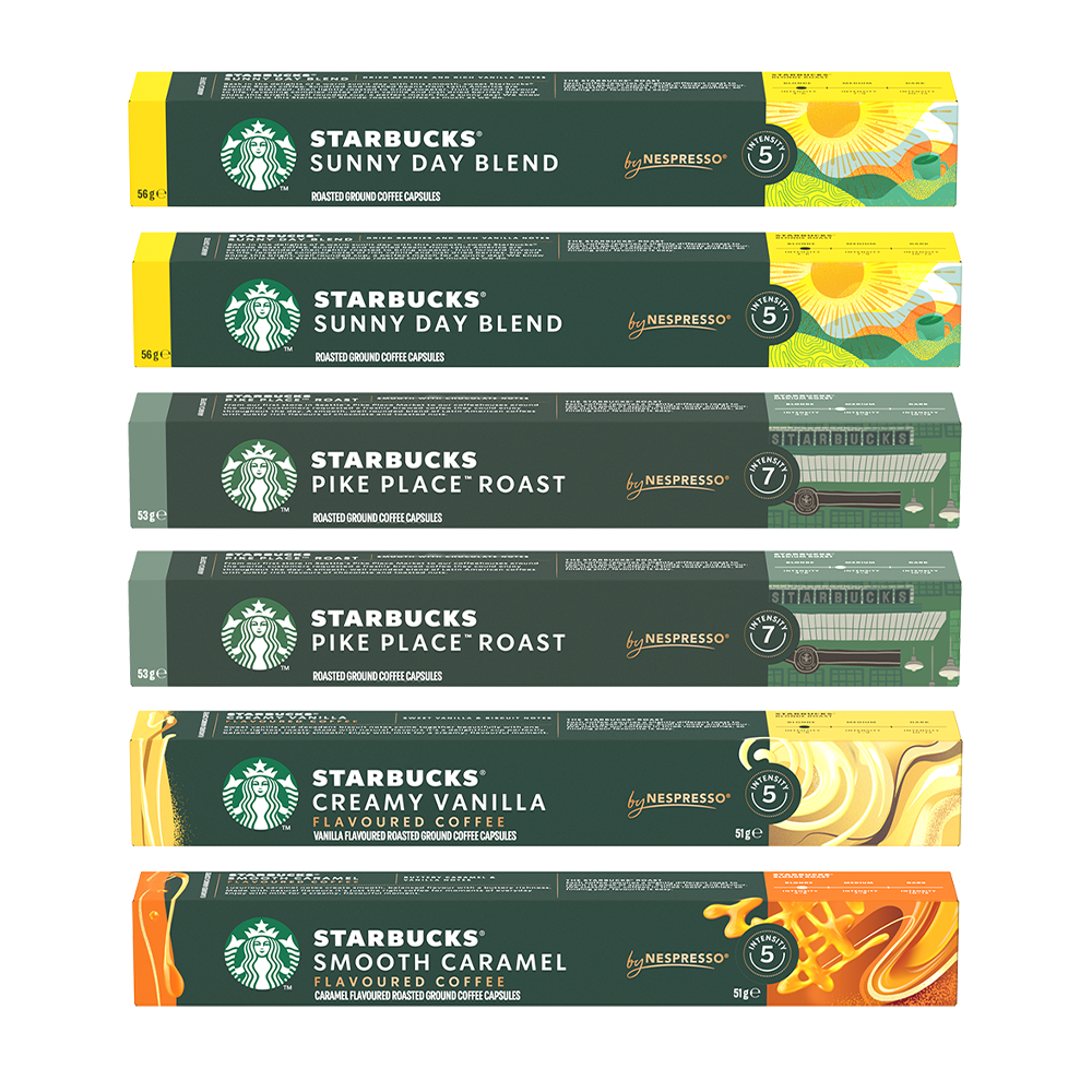 Maak nu extra voordelig kennis met Starbucks by Nespresso. 4 heerlijke smaken voor de Starbucks-ervaring thuis!