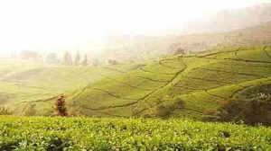 verbouwen van Pu Erh Thee. U ziet de mooie uitgestrekte theevelden.